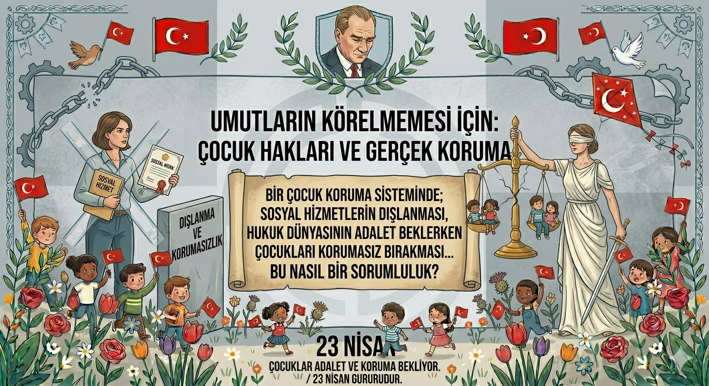 ÇOCUKLARIN KORUNMASI VE HEKİM RAPORU DAHİL ADALET İÇİN KAMUOYU DUYURUSU Konu: 2006’dan Beri Süren Yönetmelik Düzenlemeleriyle Sosyal Hizmetlerin Dışlanması, Çocukların Geleceğinin Karartılması Karşı Adalet Çağrısı ve 23 Nisan Kutlaması 23 Nisan Kutlaması Adalet Bakanlığı’na 17 Nisan 2026 tarihinde sunulan başvuruda, 2006 yılından …